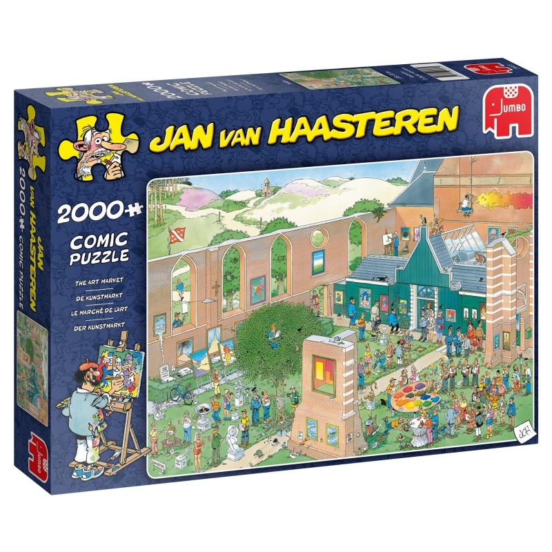 Od dziesięcioleci, Jan van Haasteren tworzy specjalnie dla marki Jumbo, niezwykle kolorowe humorystyczne ilustracje z dbałością o najdrobniejszy nawet szczegół. Nic więc dziwnego, że puzzle Jana van Haasterena stały się niekwestionowanym numerem 1 wśród komiksowych układanek. Większość fanów jego twórczości natychmiast zacznie szukać znaku rozpoznawczego Jana – płetwy rekina, którą znaleźć można we wszystkich stworzonych przez niego puzzlach!