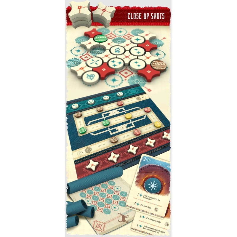 Players will assemble constellations to be set into the sky, taking turns selecting two different shapes of tiles in a unique “double-headed” snake draft, before laying them onto their personal board. Properly connect the stars, observe the roaming planets, and correctly identify the placement of celestial bodies to complete your constellations puzzle in the best possible way.