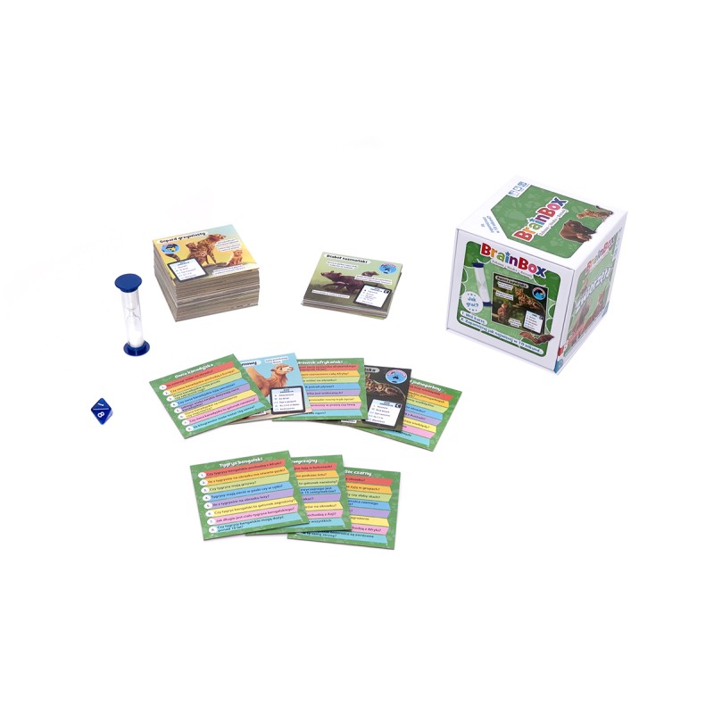 wydanie polskiePoznaj sekrety stworzeń z najróżniejszych zakątków naszej planety z BrainBox - Zwierzęta! Na 54 kartach znajdziesz informacje zarówno o puchatych szynszylach, jak i ryczących lwach i tygrysach, a angażujący sposób rozgrywki sprawi, że Twoje dziecko bez wysiłku będzie poszerzało swoją wiedzę!