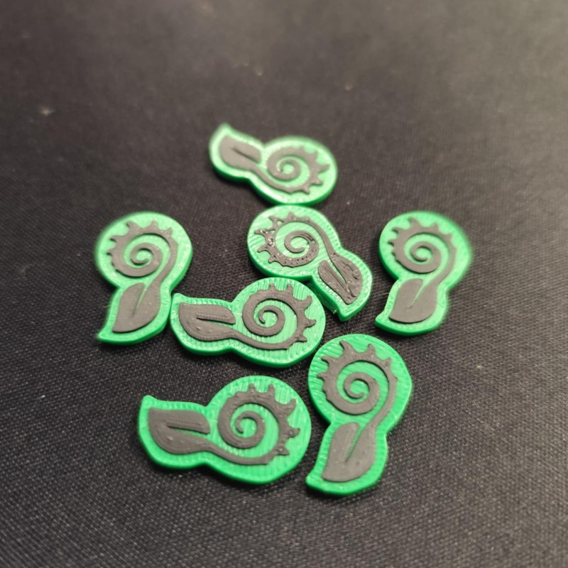 Zestaw plastikowych znaczników (88 szt.) do gry Spirit Island: Rozdarta Ziemia.