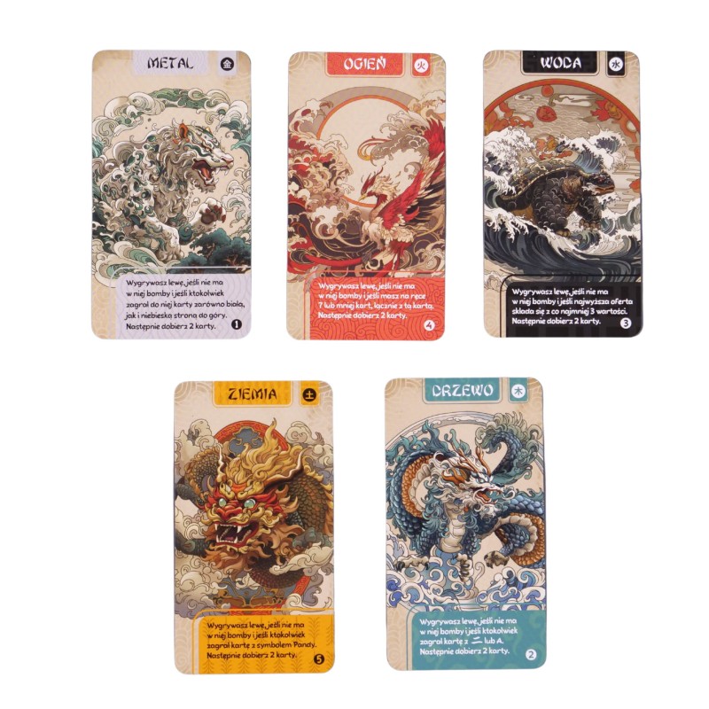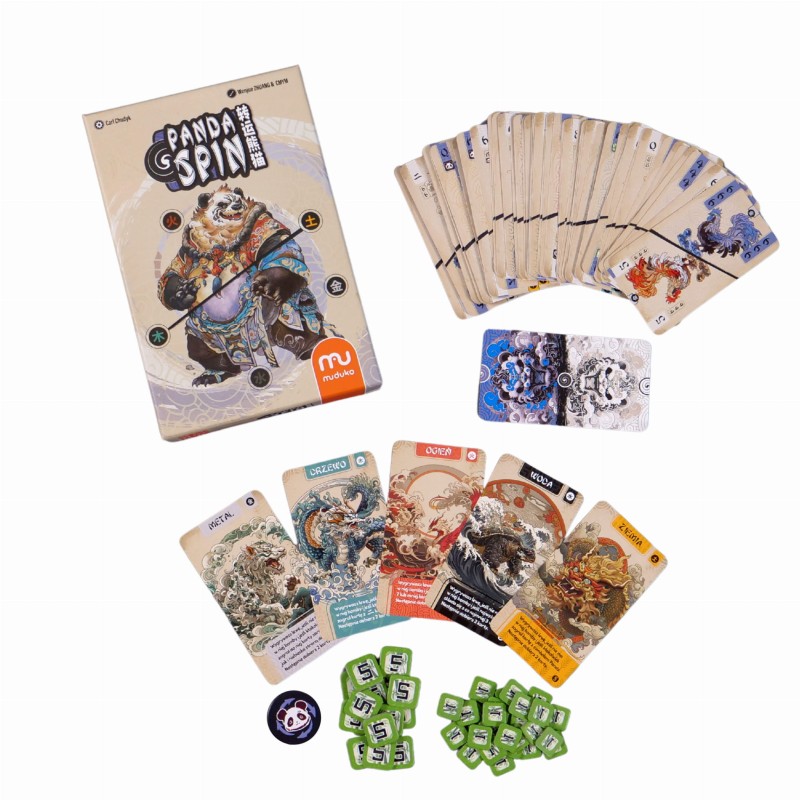 Panda Spin to pięknie ilustrowana gra, na kartach której znajdziecie zwierzęta i żywioły chińskiego zodiaku w towarzystwie tytułowej pandy.
