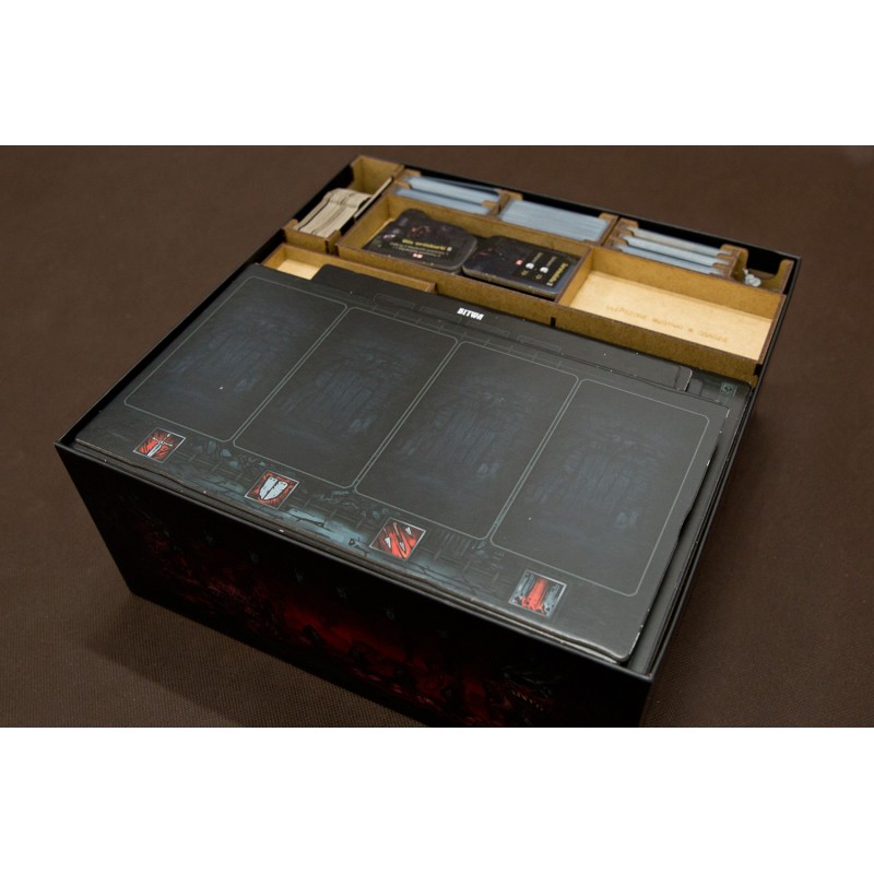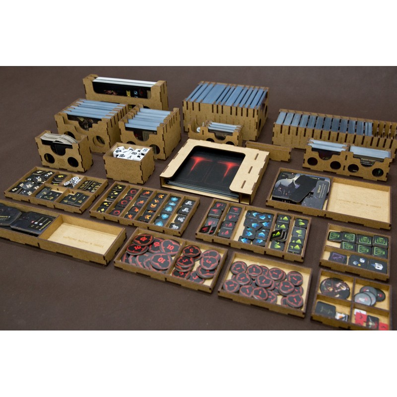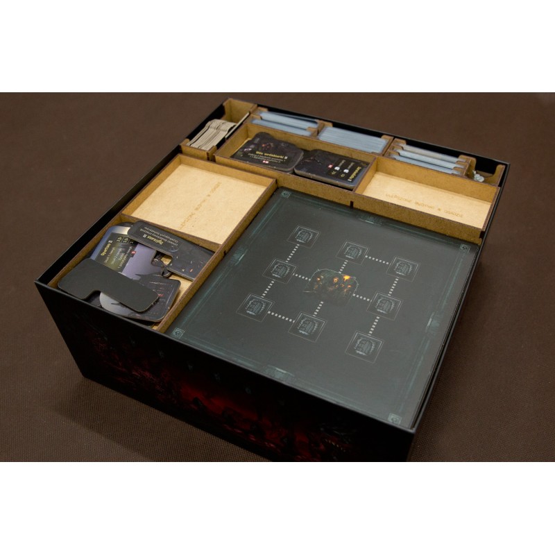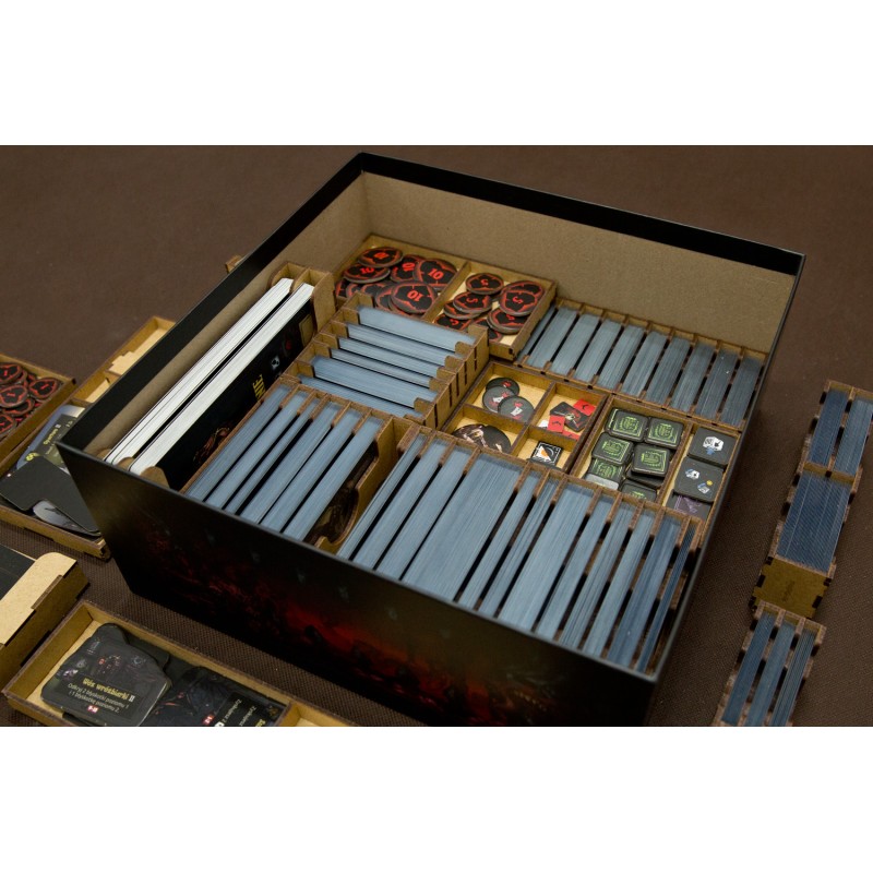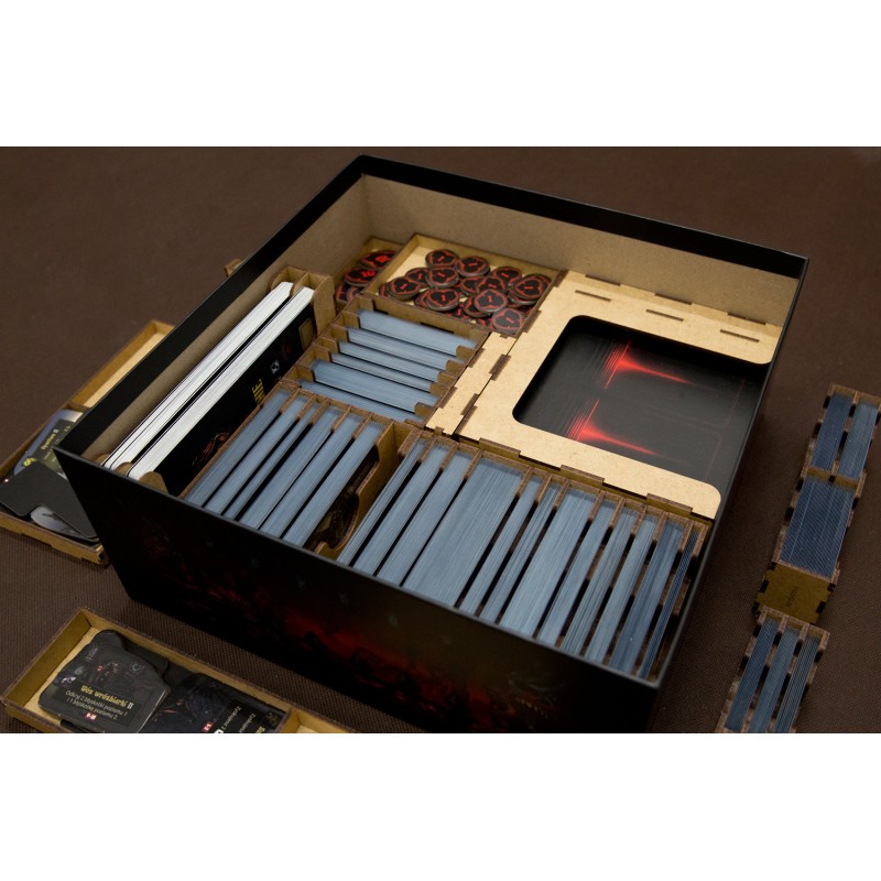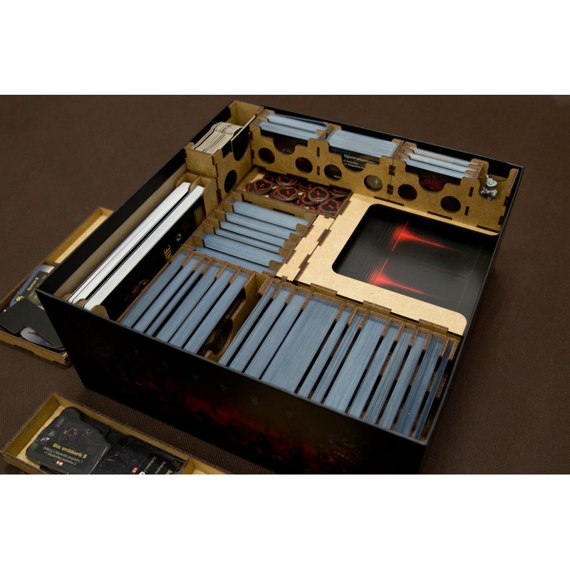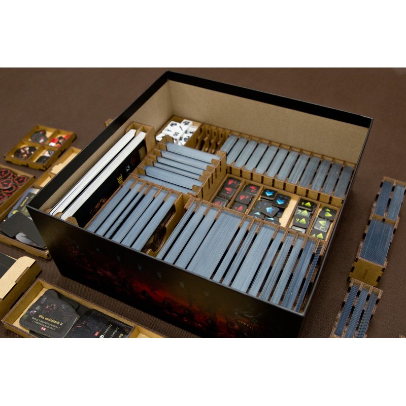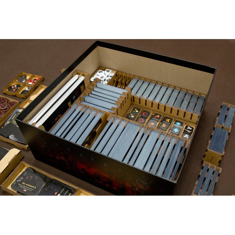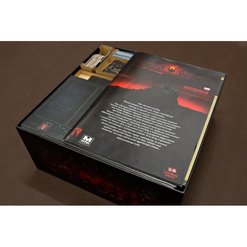 Insert pasujący do gry Darkest Dungeon wraz z dodatkiem The Crimson Court oraz Muszkieterką. Insert jest niezależny od dodatku i obsługuje również samą grę podstawową.