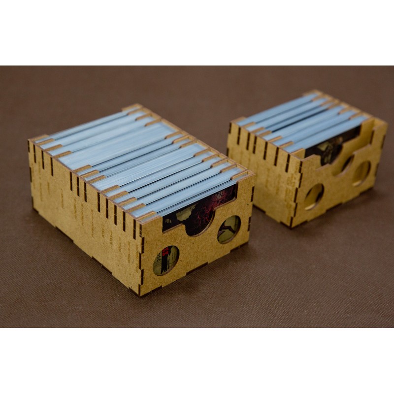-2 pojemniki segregujący karty Pomocy, Potworów / Bossów / Wydarzeń w Osadzie, Zadań w rozmiarze Tarot, zapisu kampanii,