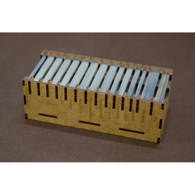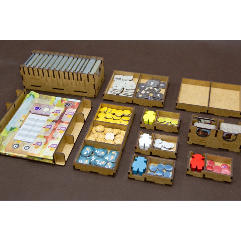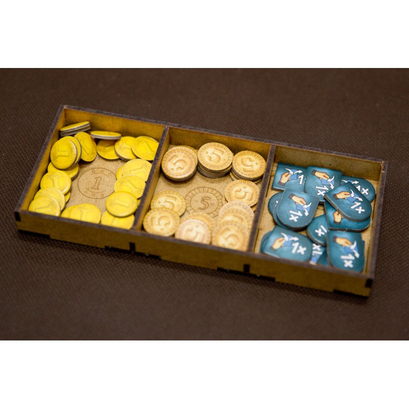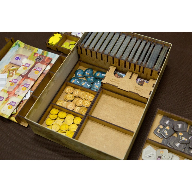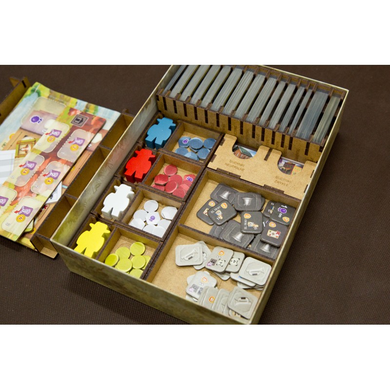 Insert pasujący do gry Great Western Trail: El Paso. Insert pomieści karty w koszulkach klasy Premium o grubości do 110 mikronów (na zdjęciach karty w koszulkach Gamegenic). Pojemniki w insercie posiadają grawery ułatwiające posegregowanie elementów.