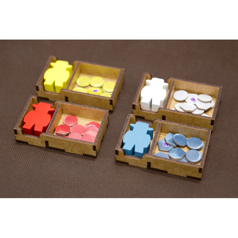 -4 pojemniki na komponenty graczy mieszczące: ranczerów oraz tekturowe znaczniki,