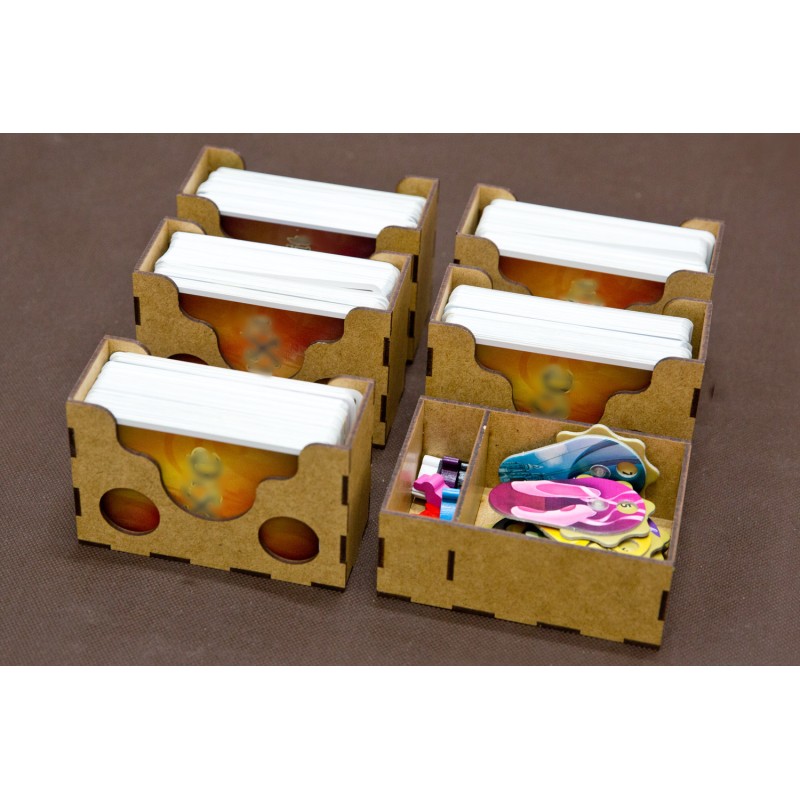 - dla kart w koszulkach Premium (100 micronów) - około 420 kart co umożwliwia spakowanie gry podstawowej i 3 dodatki.