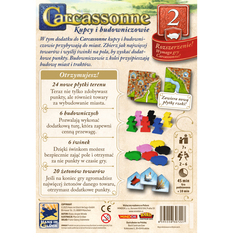 W tym dodatku do Carcassonne kupcy i budowniczowie przybywają do miast. Zbierz jak najwięcej towarów i wyślij świnki na pola by zyskać dodatkowe punkty. Budowniczowie z kolei przyśpieszają budowę miast i traktów.