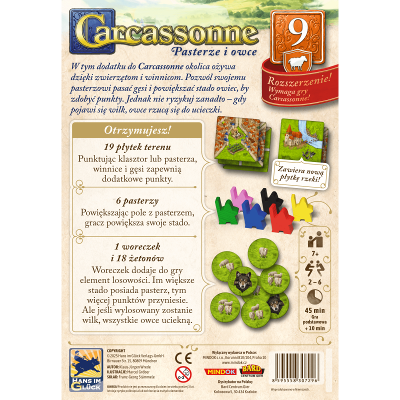 W tym dodatku do Carcassonne okolica ożywa dzięki zwierzętom i winnicom. Pozwól swojemu pasterzowi pasać gęsi i powiększać stado owiec by zdobyć punkty. Jednak nie ryzykuj zanadto – gdy pojawi się wilk, owce rzucą się do ucieczki.