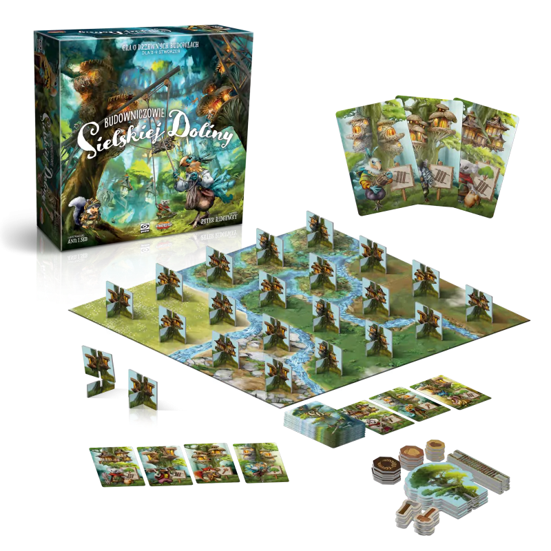 Budowniczowie Sielskiej Doliny to unikatowa, trójwymiarowa gra, oparta o układanie kafelków. Zagrywaj karty i umieszczaj nowe siedziby na coraz wyższych pniach drzew porastających las. Zbieraj zestawy kart, aby wykonywać specjalne akcje – przykładowo budować mosty lub magicznie wywoływać rozrost koron drzew. Zadbaj, aby to twoje budowle wyróżniały się na najwyższych partiach drzew ponad domami rywali i zostań na zawsze zapamiętany jako najwspanialszy architekt Sielskiej Doliny!