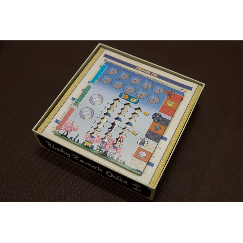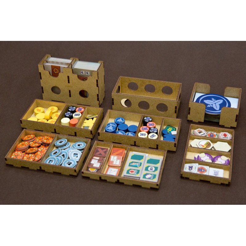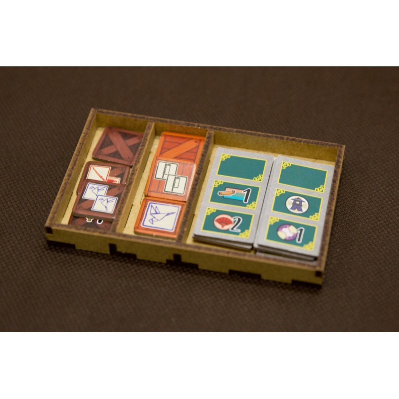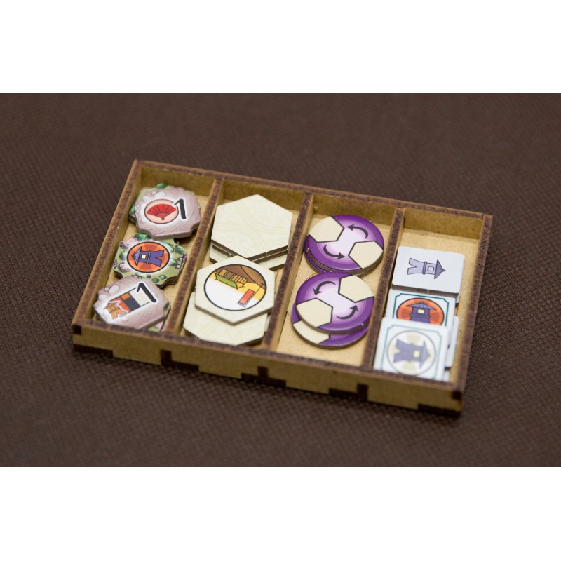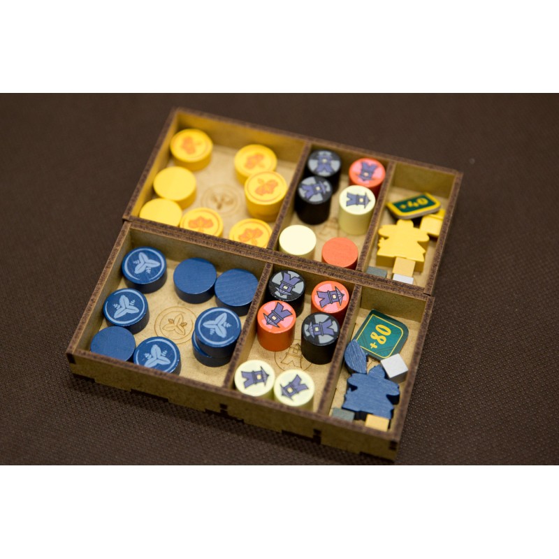 - 2 pojemniki na komponenty dla każdego z Graczy: Pieczęcie Klanu, Dworzanin, żeton +40/+80 oraz znaczniki Latarni, Punktów Klanu, Zasobów,