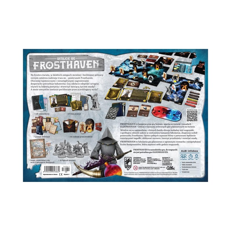 Witajcie we Frosthaven! Na krańcu świata, w dalekich ostępach mroźnej i bezlitosnej północy niczym ostatnia nadzieja trwa on – posterunek Frosthaven. Otoczony tajemniczymi i nieustępliwymi zagrożeniami desperacko potrzebuje bohaterów. Czy zdołacie odeprzeć wrogów, ożywić tę lodową pustynię i stworzyć tętniącą życiem osadę?