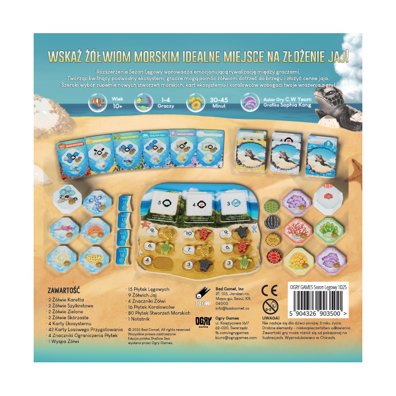 wydanie polskieSezon Lęgowy wprowadza dodatkową planszę - Wyspę Żółwi – unikalny obszar, do którego migrują morskie żółwie. Te majestatyczne stworzenia nie tylko wpływają na rozgrywkę, ale także oferują nowe możliwości punktacji i interakcji między graczami.