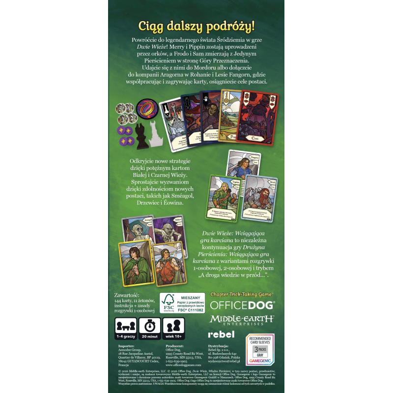 Władca Pierścieni: Dwie Wieże - Wciągająca gra karciana to kontynuacja popularnej gry opartej na zbieraniu lew, w której wspólnie wyznaczamy tory opowieści podczas wypełniania specjalnych misji. W 18 rozdziałach przedstawia ona drugą część klasycznej powieści autorstwa J.R.R. Tolkiena i pozwala na odkrywanie nowych strategii dzięki potężnym kartom Białej i Czarnej Wieży.