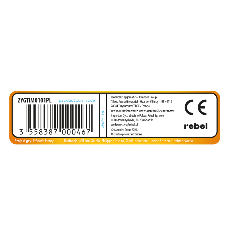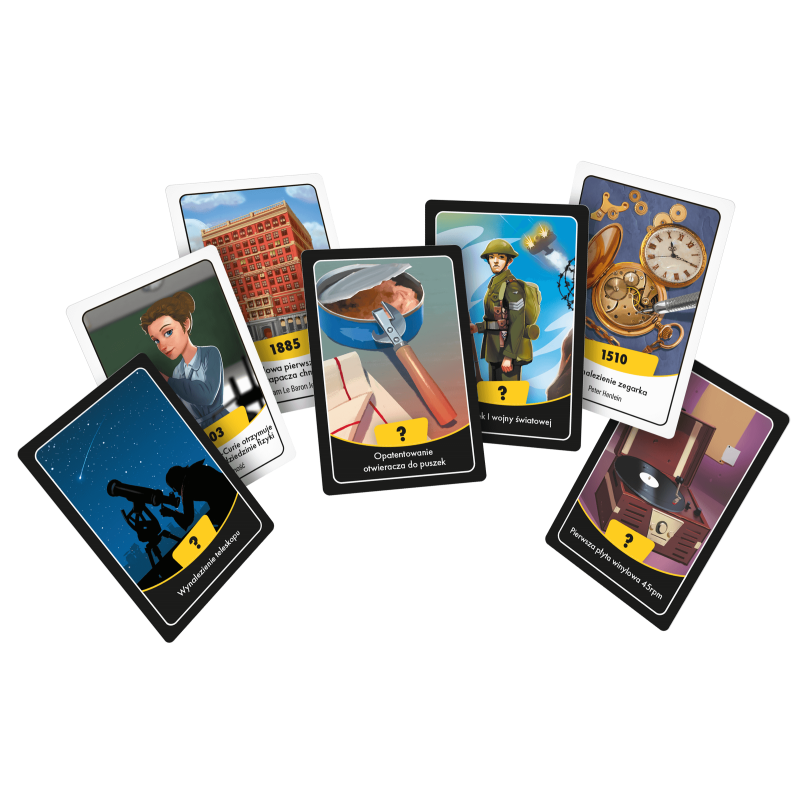 Jak sądzisz, co zostało wynalezione najwcześniej: szczoteczka do zębów, zegarek, a może teleskop? Który z cudów świata starożytnego zaczął być budowany najpóźniej? Czy ołówek we współczesnej formie jest z nami dłużej niż zapałki? Na te i inne pytania odpowie Timeline – niezwykle przyjemna karcianka dla całej rodziny, w której wspólnie tworzymy oś czasu z wylosowanych kart wydarzeń. W pudełku znajdziesz 96 kart z historii ogólnej, od prehistorii aż po współczesność.