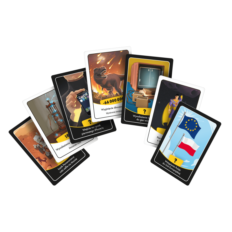 - W miarę postępów w grze nasza oś czasu będzie się składała z coraz większej liczby kart. Kolejne osoby będą zatem mogły umieszczać wydarzenia nie tylko z prawej i lewej strony, ale też pomiędzy innymi kartami. Oznacza to, że wyzwanie jest trudniejsze z każdą kolejną rundą, warto więc mądrze wybierać, których kart pozbędziemy się najpierw.