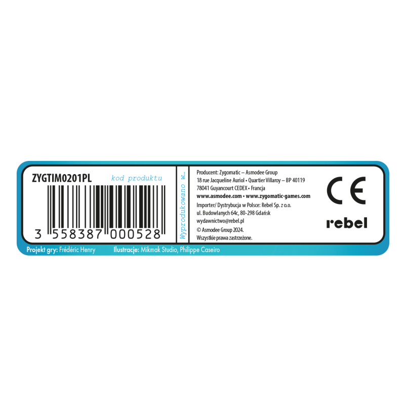 Jak sądzisz, co zostało wynalezione najwcześniej: kajak, kość sześciościenna, a może sanki? Kiedy powstały najsłynniejsze dzieła literatury takie jak „Alicja w Krainie Czarów”, „Frankenstein” czy „Trzej muszkieterowie”? W jakiej kolejności na igrzyskach olimpijskich pojawiały się poszczególne sporty? Na te i inne pytania odpowie Timeline: Gry i wypoczynek – niezwykle przyjemna karcianka dla całej rodziny, w której wspólnie tworzymy oś czasu z wylosowanych kart wydarzeń. W pudełku znajdziesz 96 kart z historii ogólnej, od prehistorii aż po współczesność.