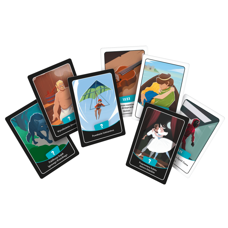 - W miarę postępów w grze nasza oś czasu będzie się składała z coraz większej liczby kart. Kolejne osoby będą zatem mogły umieszczać wydarzenia nie tylko z prawej i lewej strony, ale też pomiędzy innymi kartami. Oznacza to, że wyzwanie jest trudniejsze z każdą kolejną rundą, warto więc mądrze wybierać, których kart pozbędziemy się najpierw.