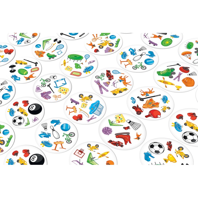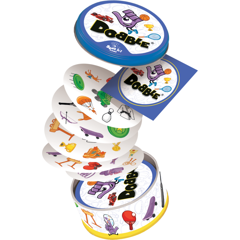 Dobble Sport to nowa odsłona popularnej gry karcianej, w które staramy się znajdować pary identycznych symboli zanim zrobią to przeciwnicy. Zestaw zawiera 55 kart z przedmiotami charakterystycznymi dla różnych dyscyplin sportowych. Jednak gra wiąże się z aktywnością nie tylko z nazwy! Dzięki angażującym mechanizmom opartym o refleks i zręczność, Dobble świetnie wspierają trening spostrzegawczości i szybkości reakcji.