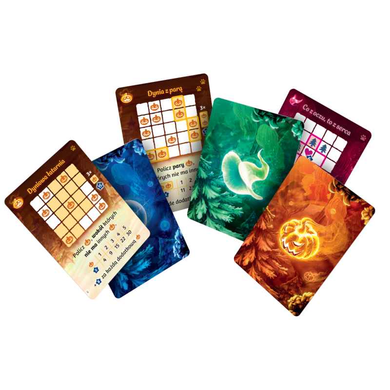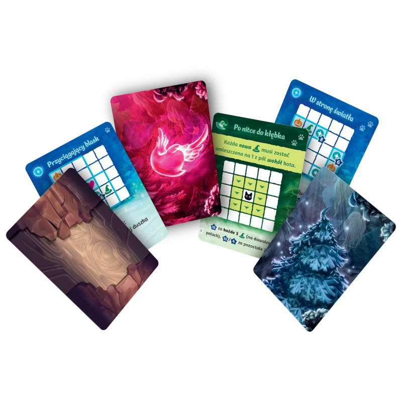 - Każdy rodzaj duszków ma własną talię celów, podobnie z resztą jak lasy, a w pojedynczej rozgrywce używamy tylko niektórych kart. Dzięki temu poszczególne rozgrywki pozostają ciekawe i stanowią wyzwanie nawet po wielu rozegranych partiach.