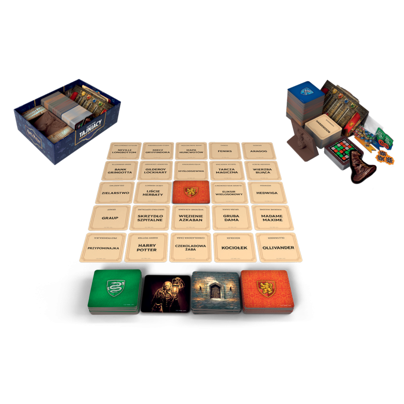 Tajniacy: Powrót do Hogwartu to tematyczna odsłona imprezowej gry dedukcyjnej, która podbiła serca graczy na całym świecie. Podczas zabawy prefekci domów pomagają uczniom pierwszego roku w odkrywaniu sekretów zamku, próbując kierować ich z dala od zamkniętych drzwi i, co gorsza, Argusa Filcha! W tym celu będą starali się podawać jak najlepsze podpowiedzi do znajdujących się na stole słów lub obrazków, tak, by grupa jak najszybciej odkryła wszystkie przypisane do niej miejsca.