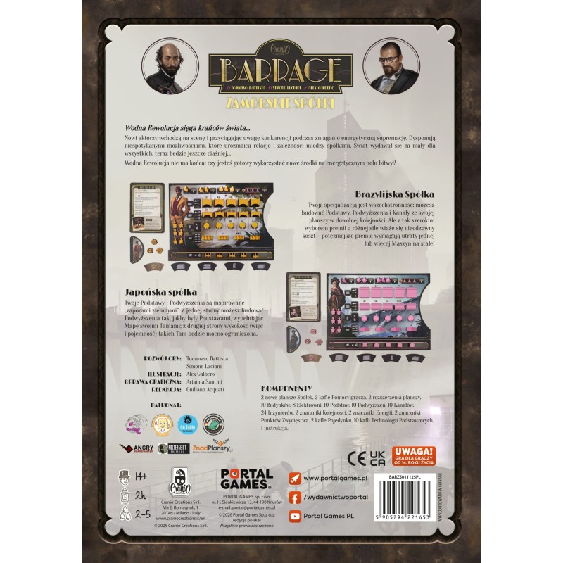 wydanie polskieDołącz do gry w Barrage dwie nowe Spółki - brazylijską i japońską, które mają unikatowe cechy zarówno pod względem mechaniki gry, jak i komponentów.
