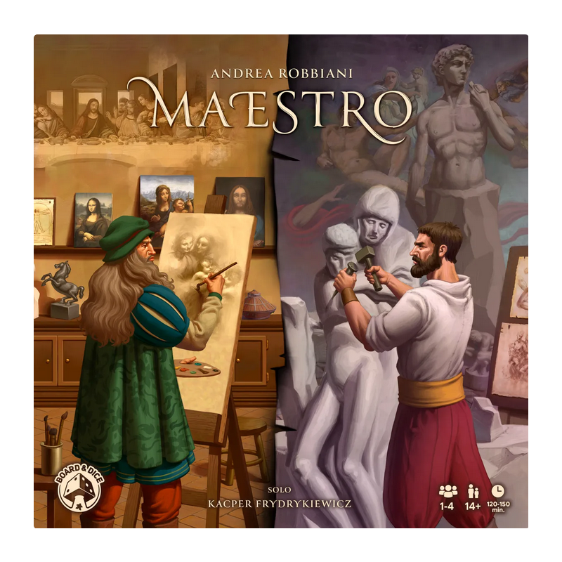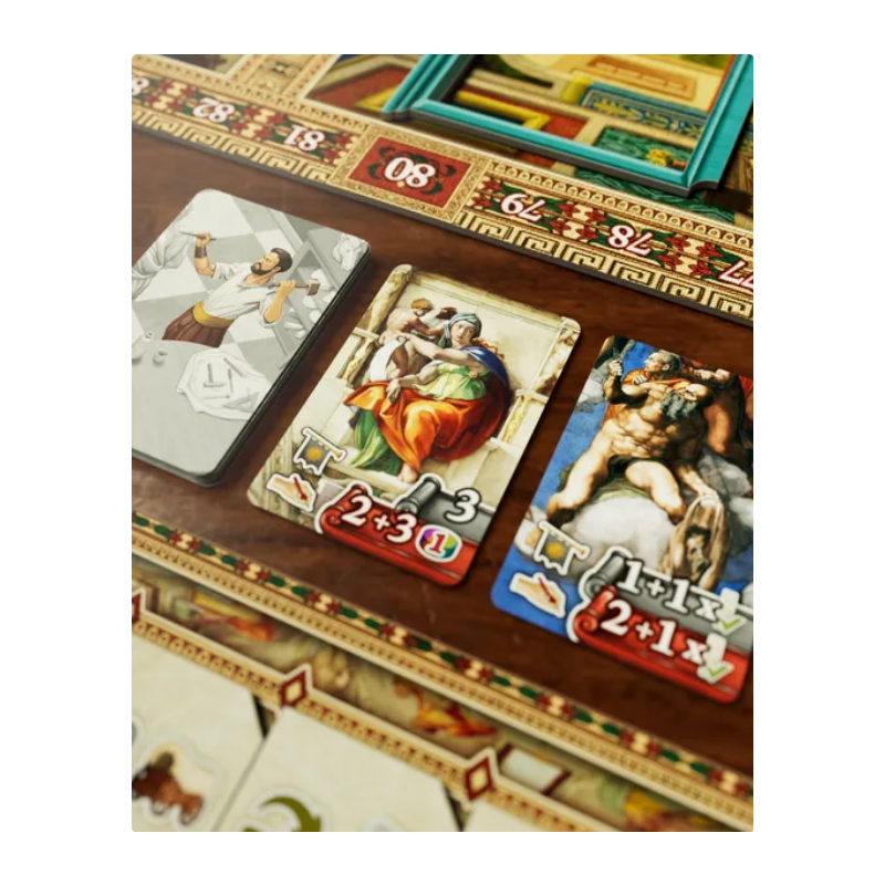 In Art of Rivalry Michelangelo and da Vinci’s workshops compete for fame and aristocratic attention in various courts and galleries across the Italian peninsula. During the game, the two workshops are either represented by a single player or a team of players.