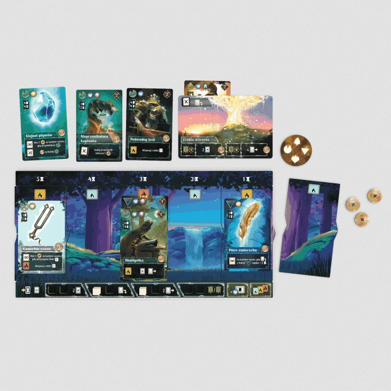 Kontroluj i modyfikuj czas! Przesuwające się na osi czasu płytki pozwolą ci przewidzieć, kiedy twoje karty wejdą do gry i nadać rytm ich aktywacji.