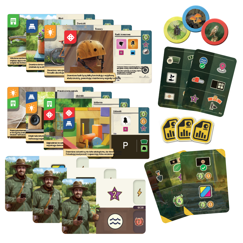 wydanie polskieLeśnicy to gra o drzewach i drewnie, podkreślająca istotną rolę lasów w wychwytywaniu CO2 i produkcji odnawialnego zasobu. Gracze zarządzają lasem w zrównoważony sposób, realizując zamówienia na produkty z drewna i dbając o ekosystem z myślą o przyszłych pokoleniach