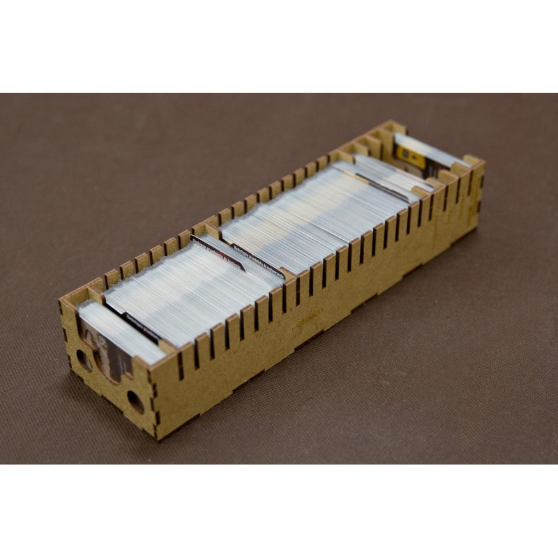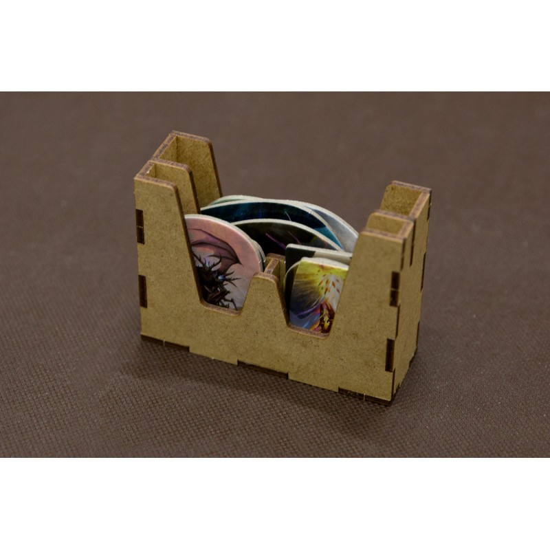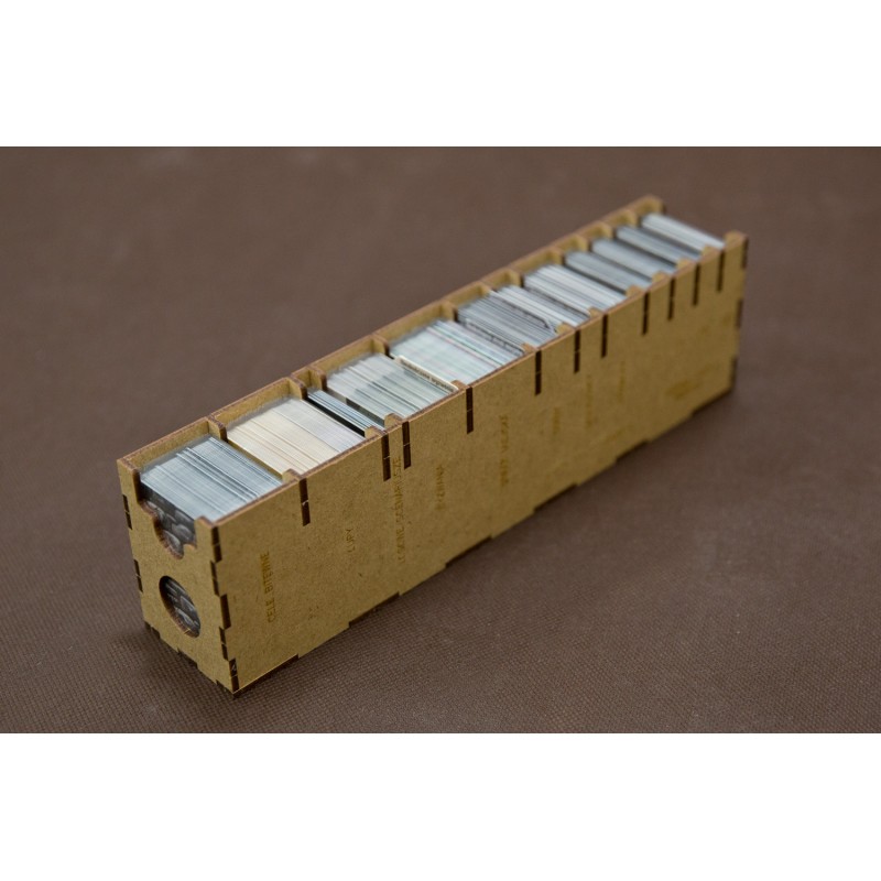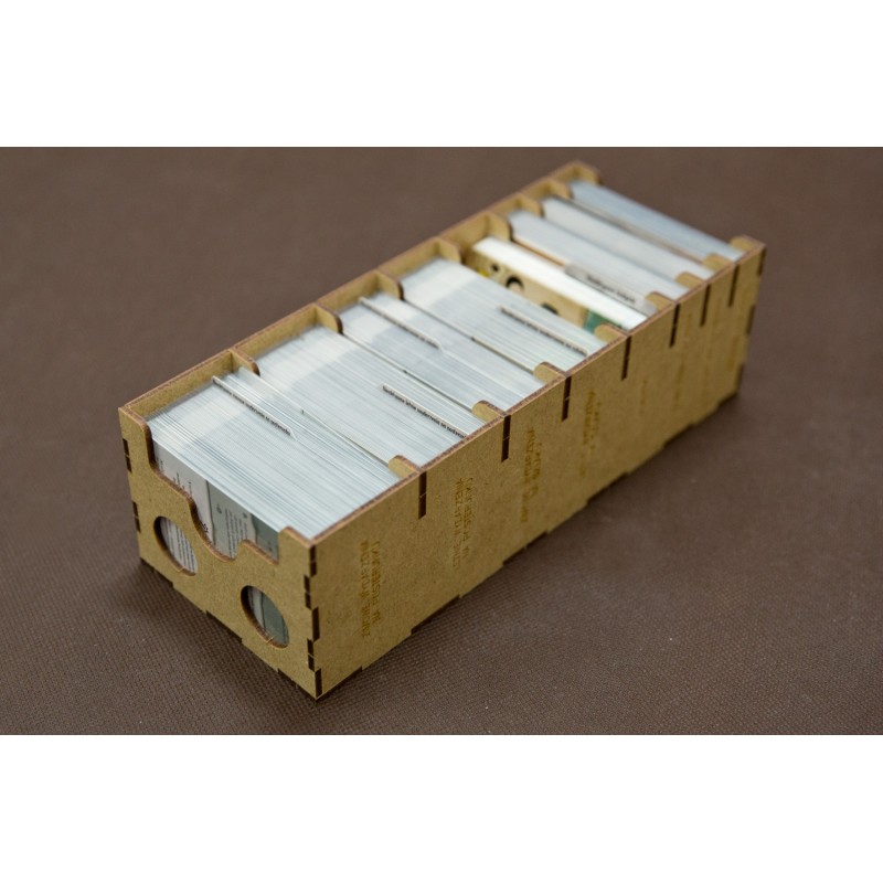 - pojemniki na karty umożliwiają przechowywanie posortowanych kart wg rodzajów bez koszulek (insert posiada przegrody i wycięcia umożliwiające dostosowanie wolnych przestrzeni na karty),