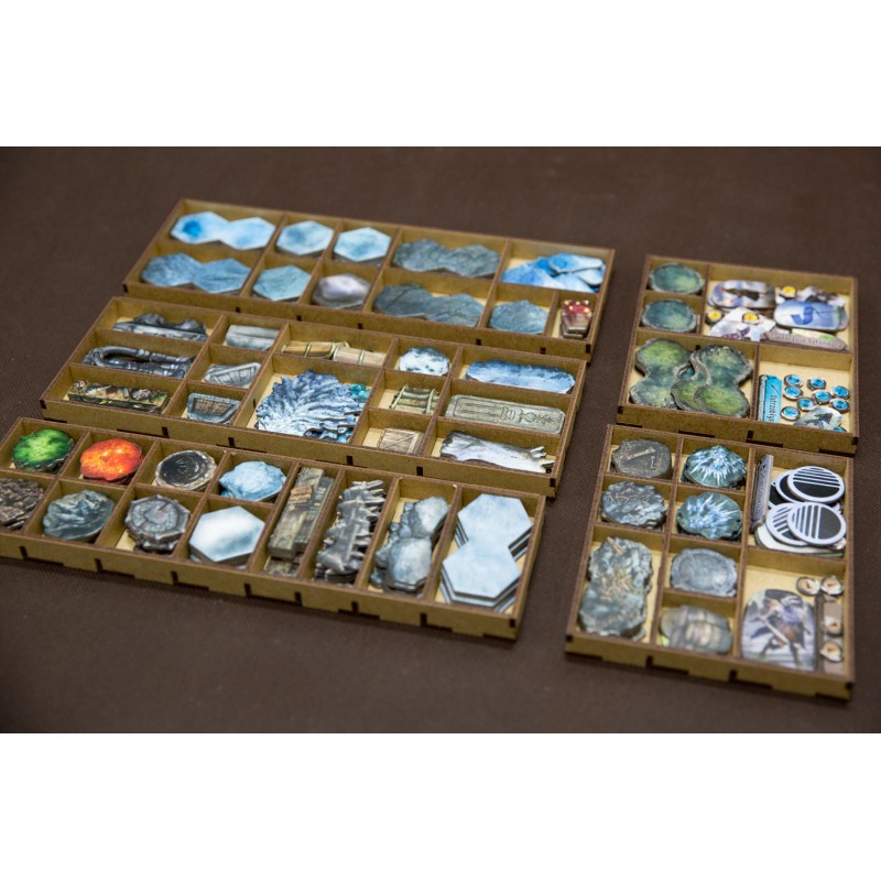 Insert jest przygotowany w formie pozwalającej szybkie i sprawne przygotowanie rozgrywki oraz porządkowanie po rozgrywce. Zawiera następujące rozwiązania zaprojektowane dla Was: