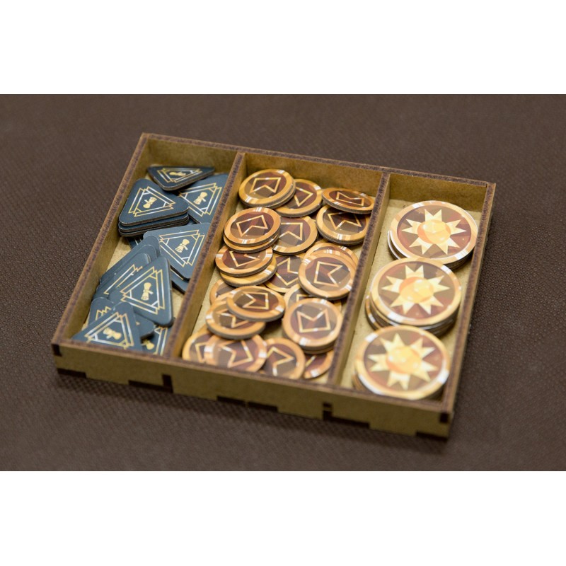 Insert pasujący do gry Korona Starego Króla. Insert mieści karty w koszulkach klasy Premium o grubości do 110 mikronów. Na zdjęciach karty w koszulkach Gamegenic (100 mikronów).