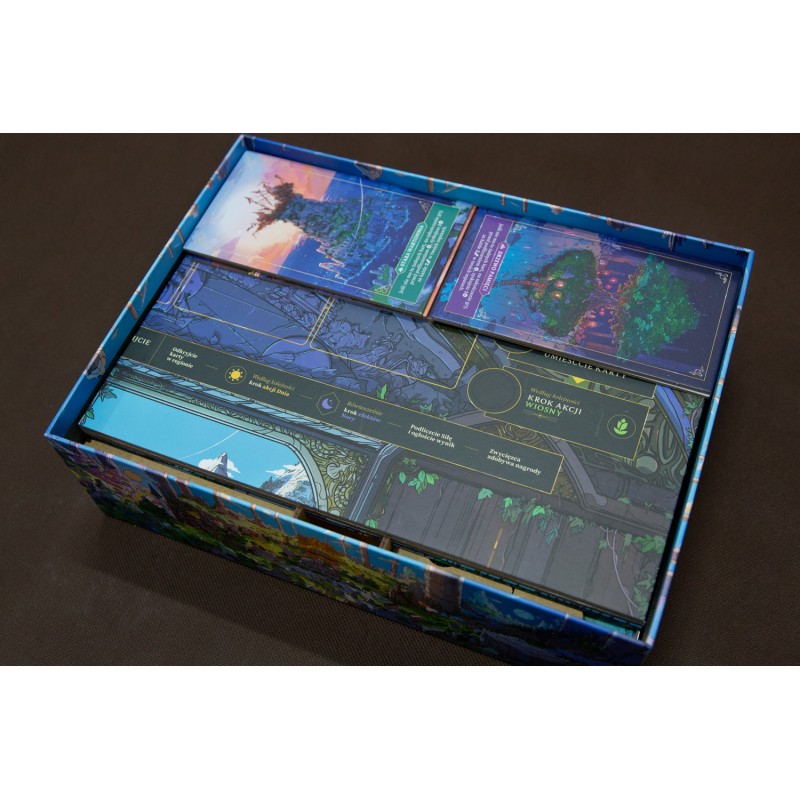 - insert zawiera pojemniki na żetony i karty (podajnik) gotowe do wyłożenia na stół,