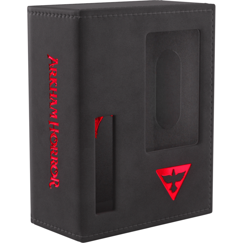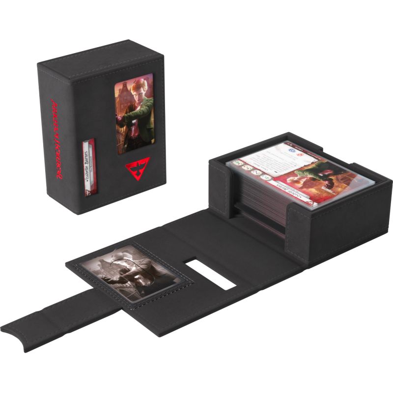 To oficjalnie licencjonowane pudełko zostało zaprojektowane specjalnie z myślą o potrzebach graczy. Rozmiar idealnie dopasowano do pełnej talii badacza, nawet zakoszulkowanej. Bez otwierania pudełka możesz łatwo rozpoznać swoją talię dzięki wycięciom prezentującym portret badacza, klasę, imię oraz cechę.