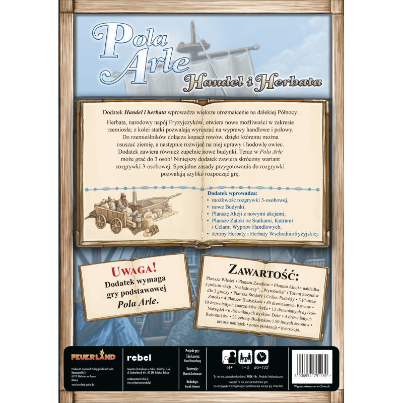 Pola Arle: Handel i herbata to rozszerzenie wprowadzające możliwość rozgrywek trzyosobowych, a także zupełnie nowe strategie do wypróbowania. Herbata, narodowy napój Fryzyjczyków, otwiera nowe możliwości w zakresie rzemiosła; z kolei statki pozwalają wyruszać na wyprawy handlowe i połowy. Do rzemieślników dołącza kopacz rowów, dzięki któremu można osuszać ziemię, a następnie rozwijać na niej uprawy i hodowlę owiec. Dodatek zawiera również zupełnie nowe budynki.