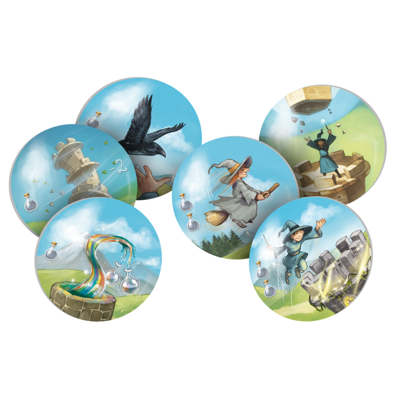 - Wiedźma to specjalny pionek, który będzie poruszał się po torze, ilekroć któryś z graczy zagra kartę ruchu z obrazkiem zapisków. Spotkanie z wiedźmą jest niezwykle ryzykowne i prowadzi do utraty eliksirów, należy więc za wszelką cenę go unikać.