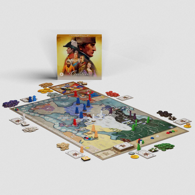 wydanie polskieCoalitions to gra osadzona w realiach rewolucyjnych i napoleońskich wojen. Gracze wcielają się w wiodące europejskie potęgi i rywalizują ze sobą, dynamicznie zmieniając polityczną panoramę Starego Kontynentu. Innowacyjny i elegancki system umożliwia odtworzenie najważniejszych wydarzeń tych konfliktów, ale pozwala także tworzyć własne, wiarygodne historie alternatywne.