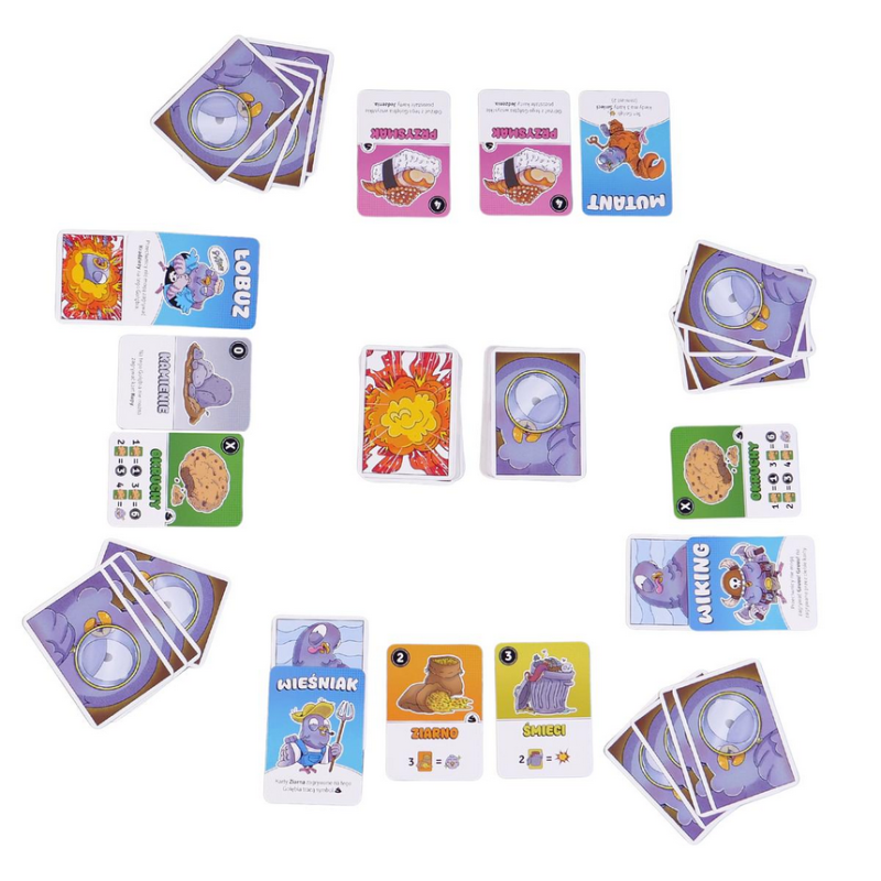 wydanie międzynarodowePełna humoru gra karciana dla osób uwielbiających negatywną interakcję. W trakcie rozgrywki będziecie karmić swoje gołębie i ochraniać je przed nieczystymi zagrywkami przeciwników. Dodatkowo w drodze do zwycięstwa pomogą wam specjalne karty akcji, dzięki którym będziecie mogli pokrzyżować plany pozostałych graczy!